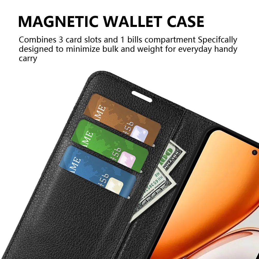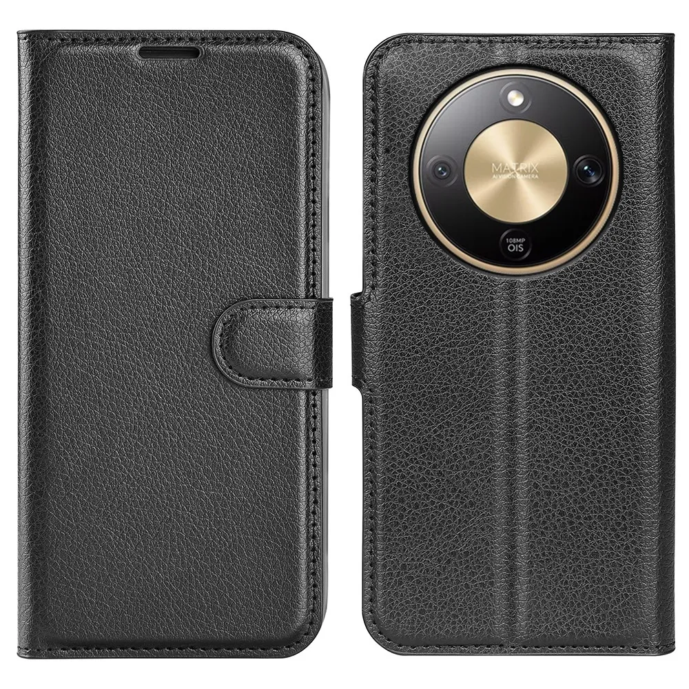 Litchi könyvtáska Honor Magic 8 Lite 5G készülékhez - fekete