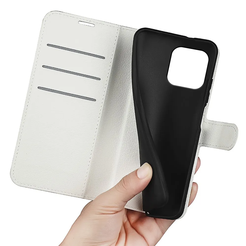 Fehér Litchi pénztárca tok iPhone 15 készülékhez