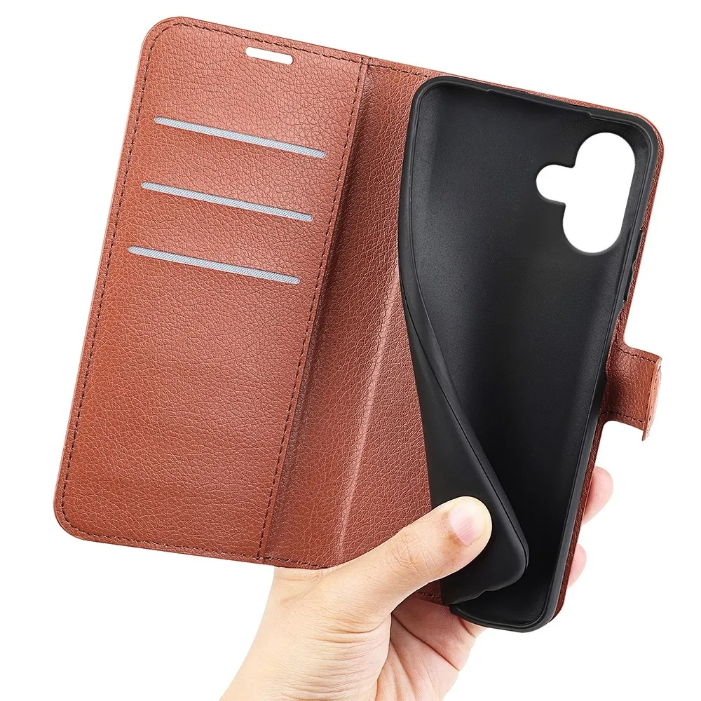 Litchi könyvtáska iPhone 16-hoz - barna