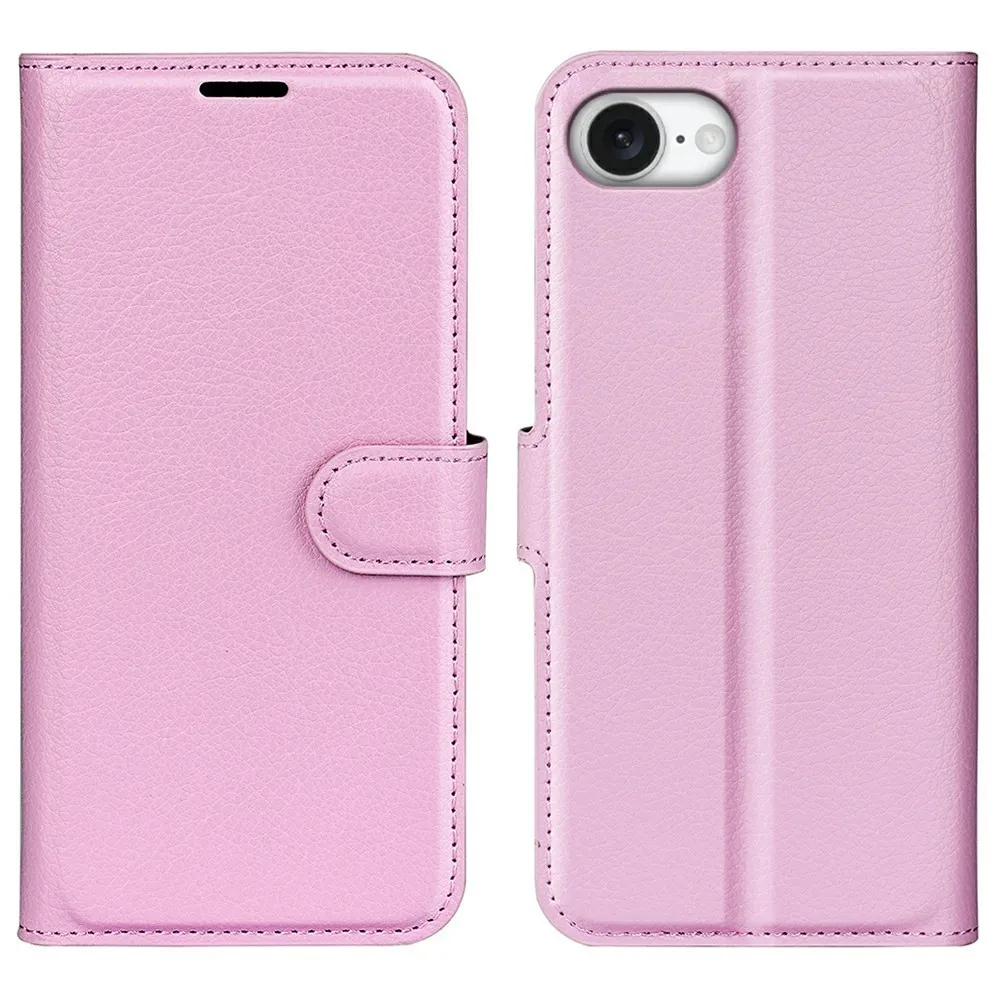 Rózsaszín Litchi pénztárca tok iPhone 16e készülékhez