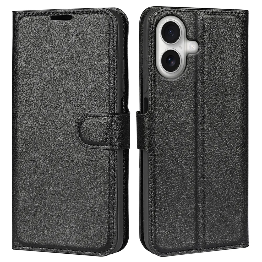 Litchi könyvtáska iPhone 17 készülékhez - fekete
