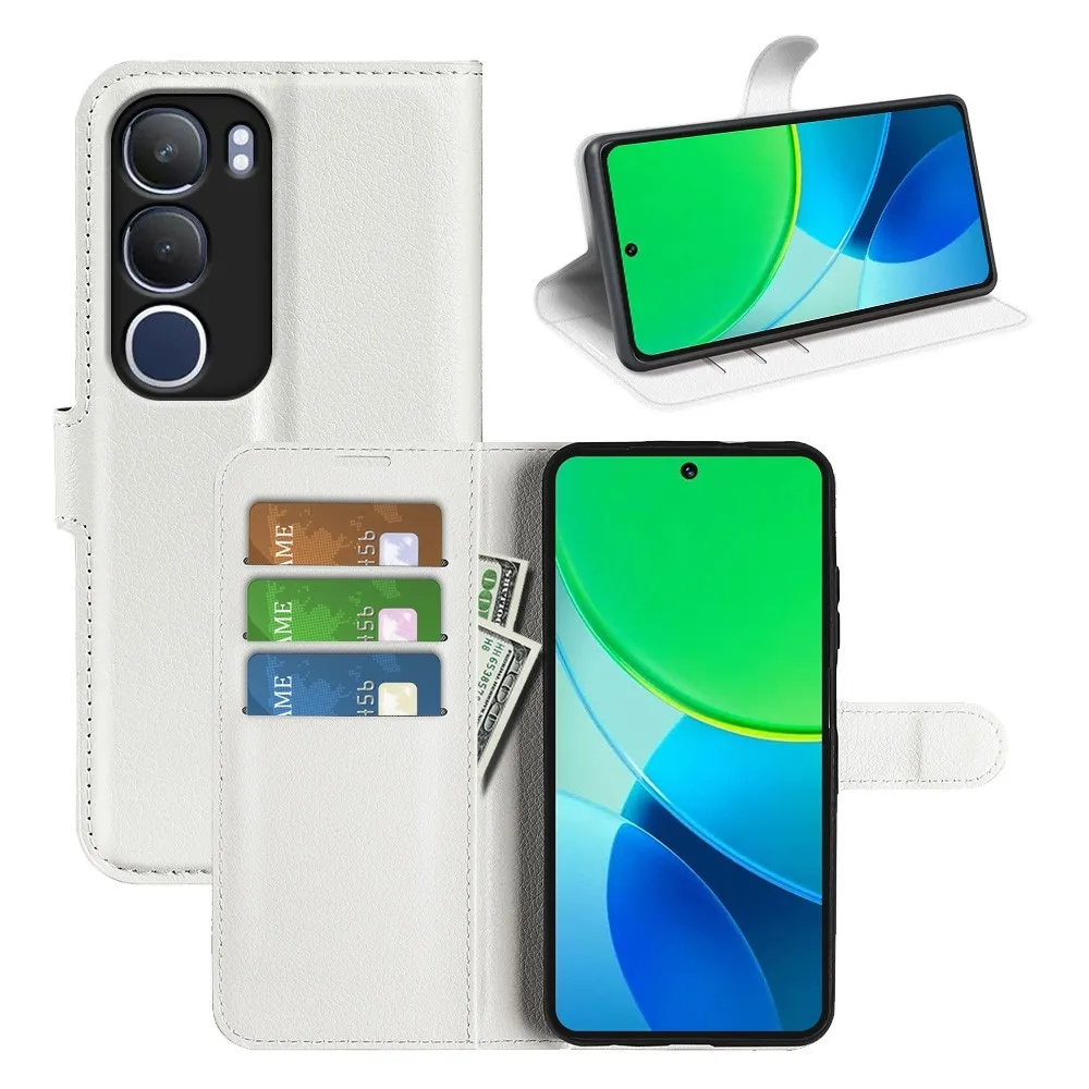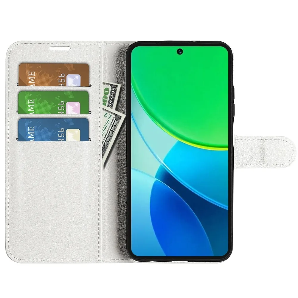 Fehér Litchi pénztárca tok a Vivo Y19s számára