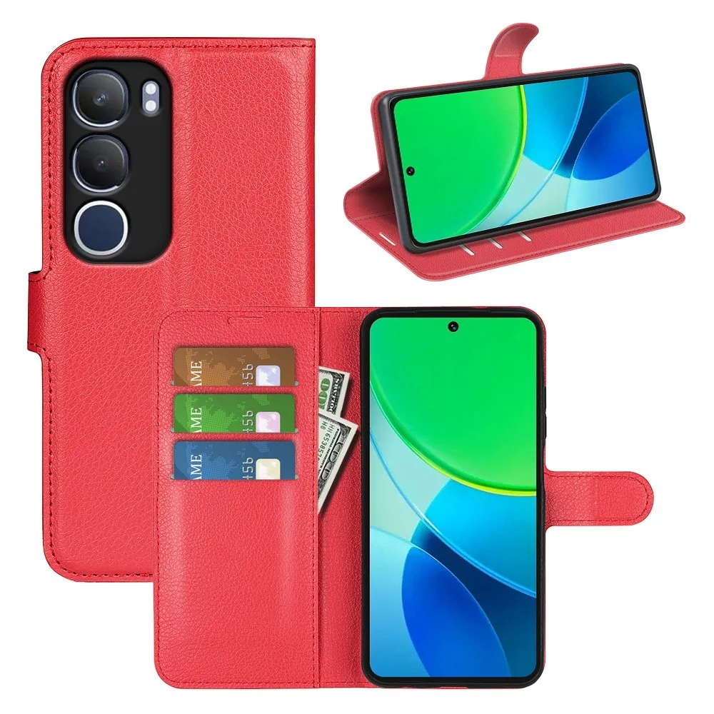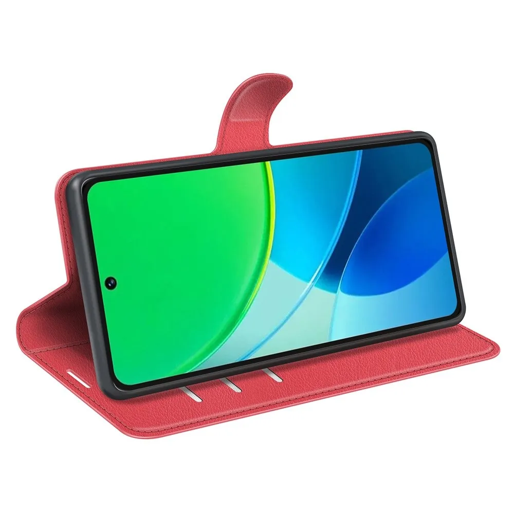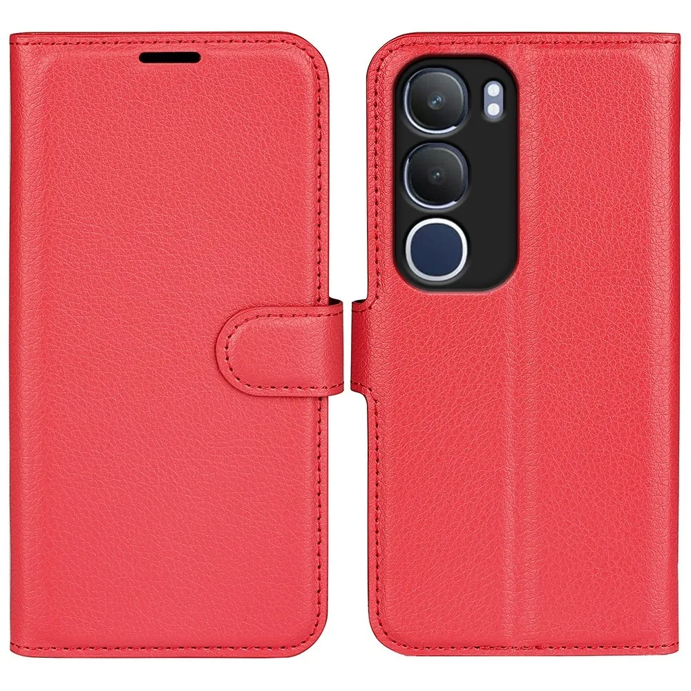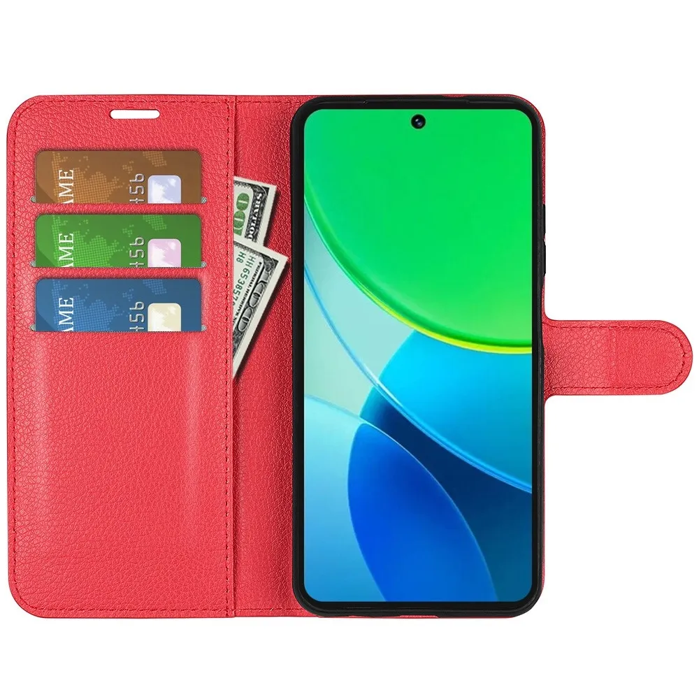 Vörös Litchi pénztárca tok a Vivo Y19s számára