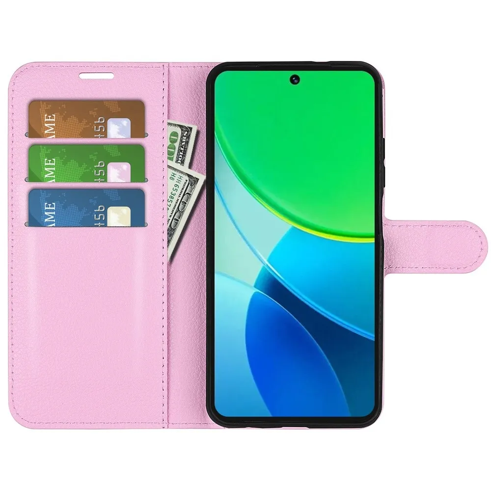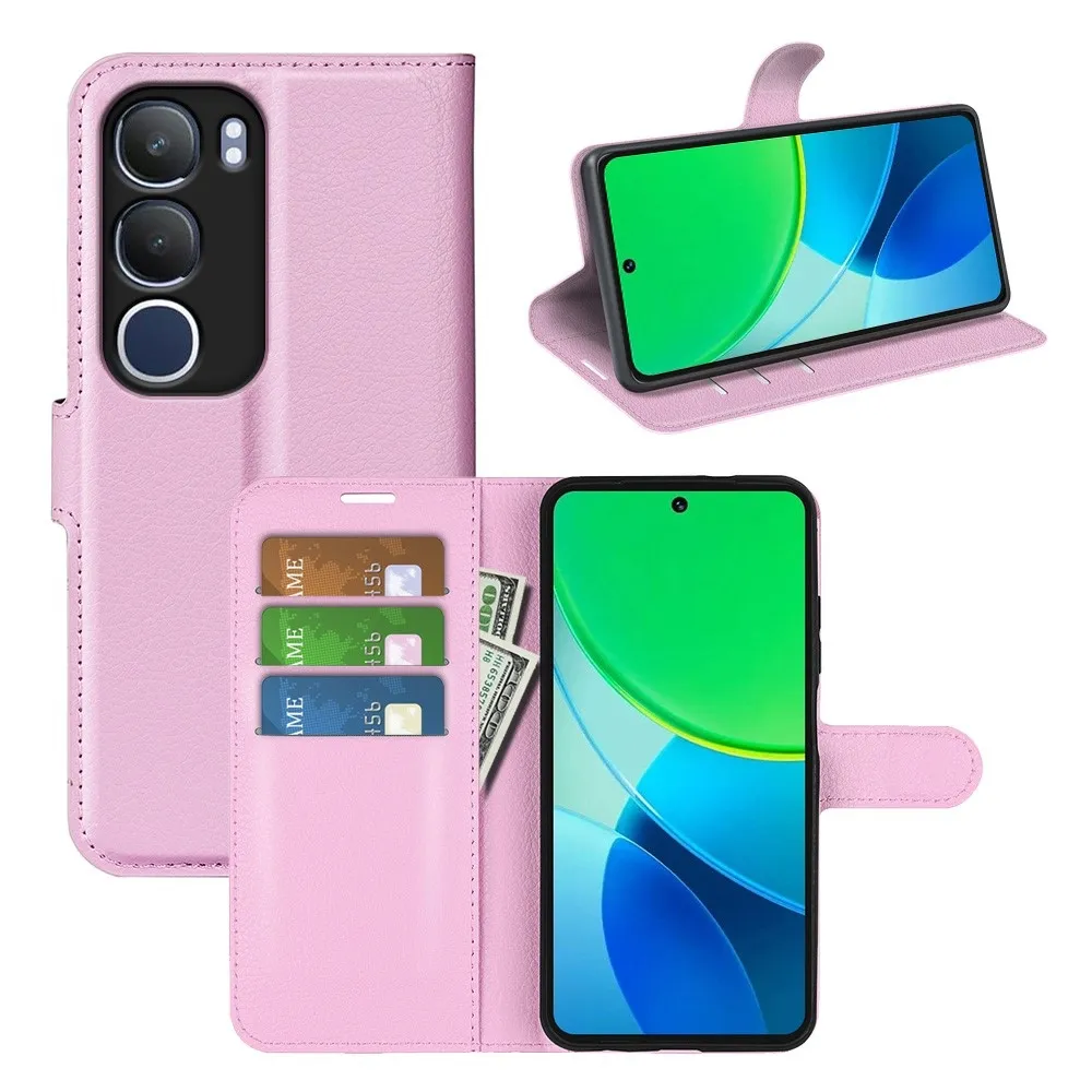 Rózsaszín Litchi pénztárca tok a Vivo Y19s számára