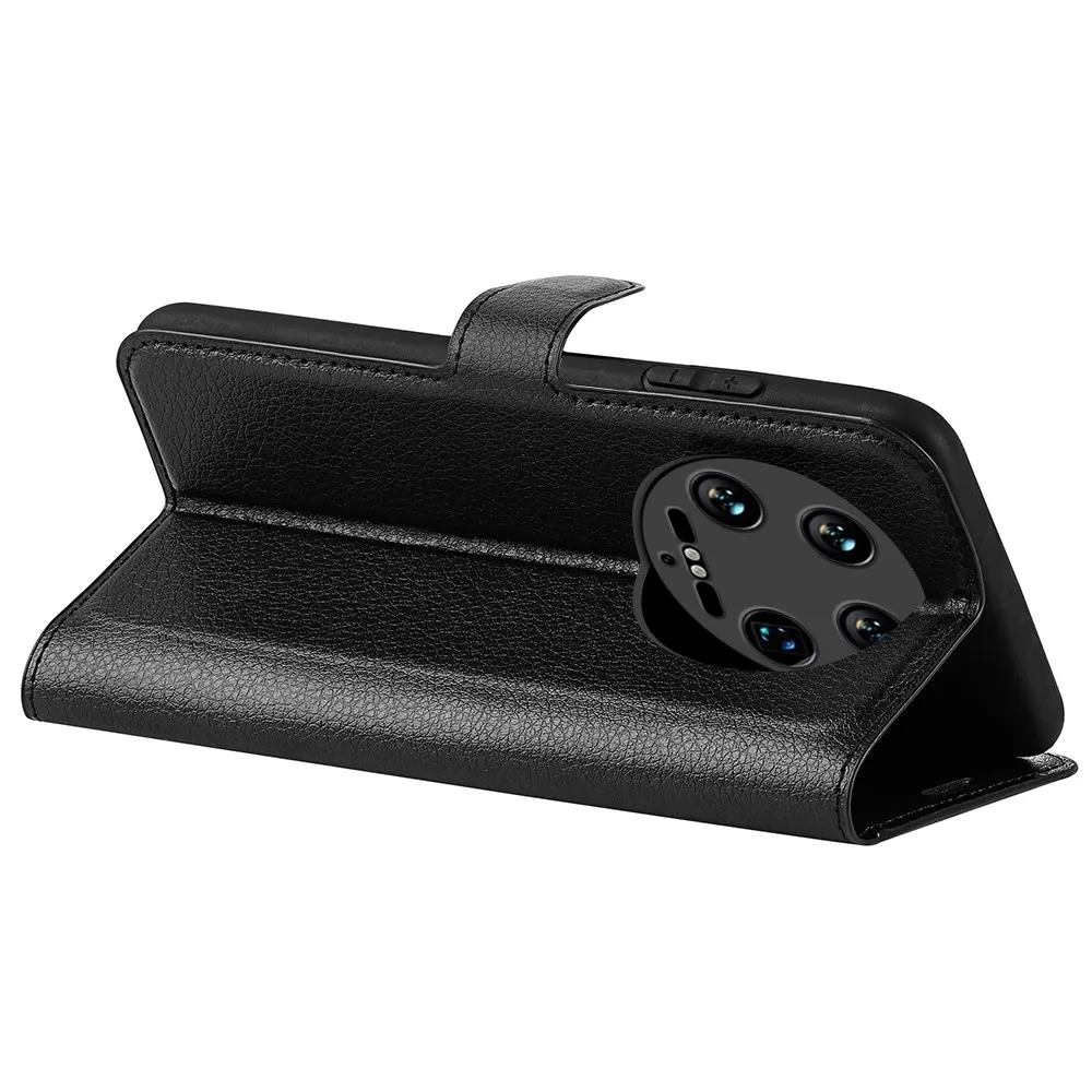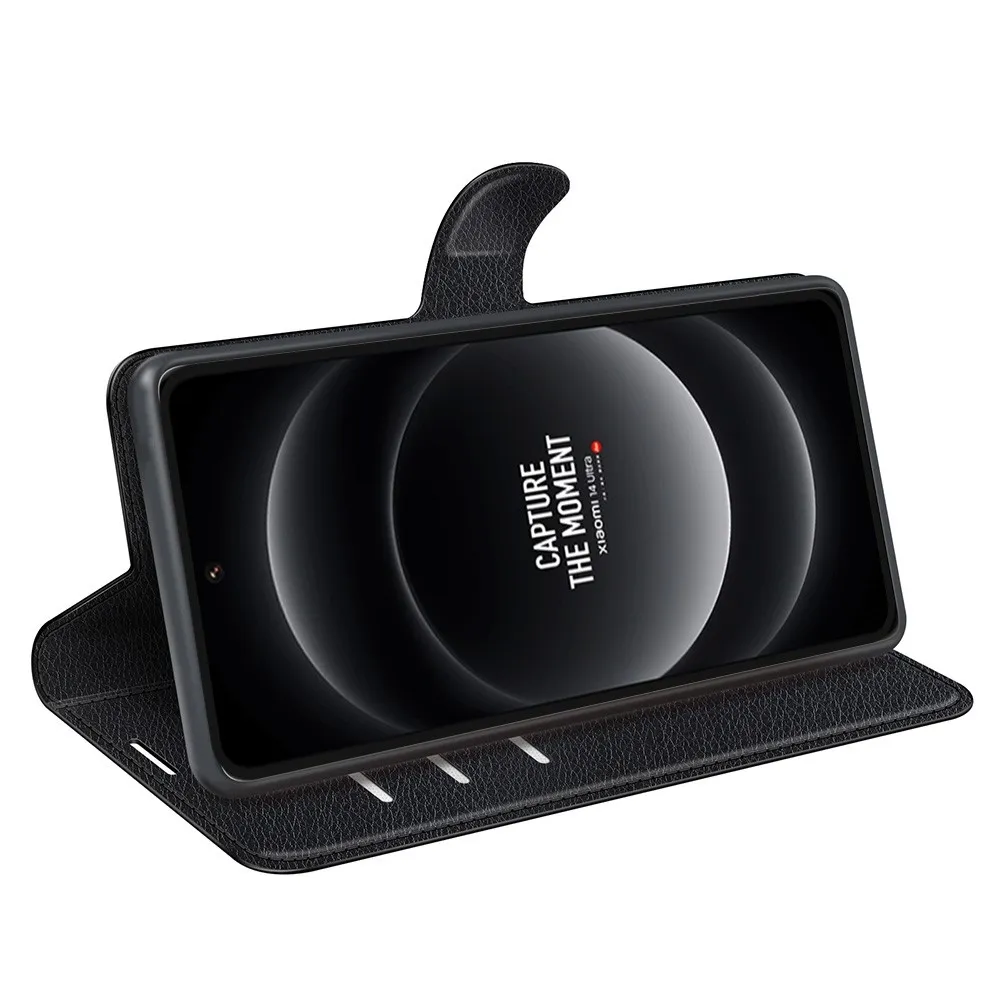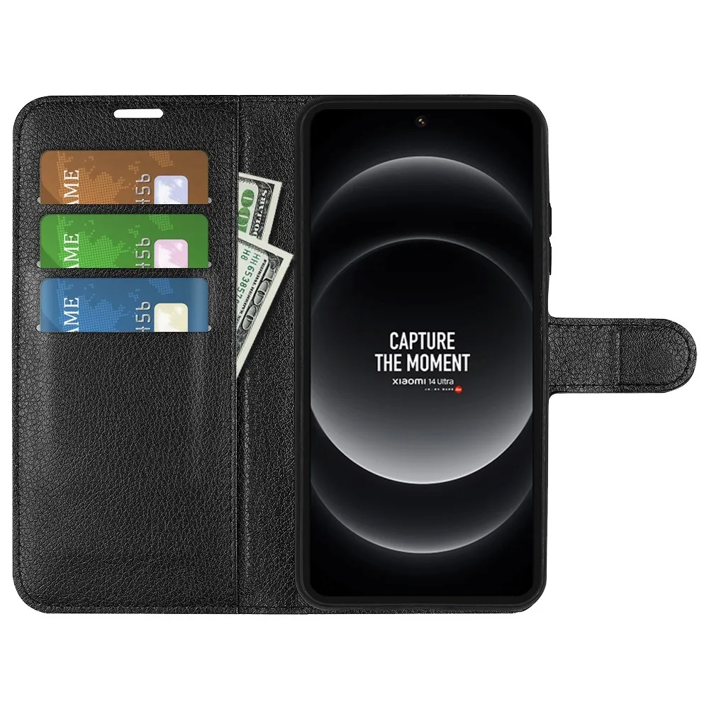 Fekete pénztárca tok Litchi a Xiaomi 14 Ultra számára