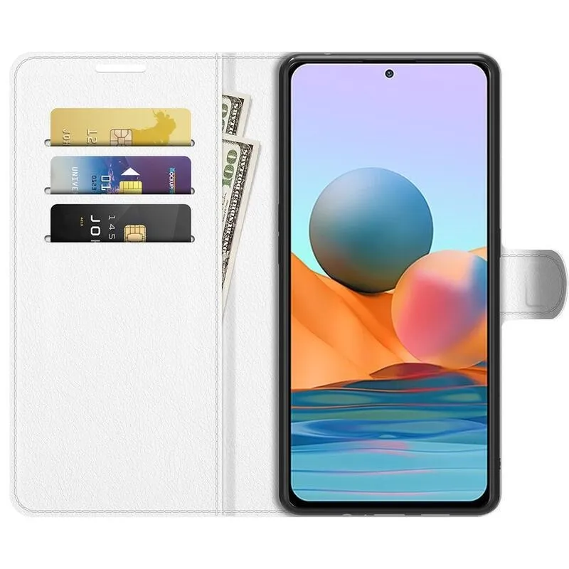 Litchi pénztárca tok a Xiaomi Redmi Note 10 Pro-hoz - fehér