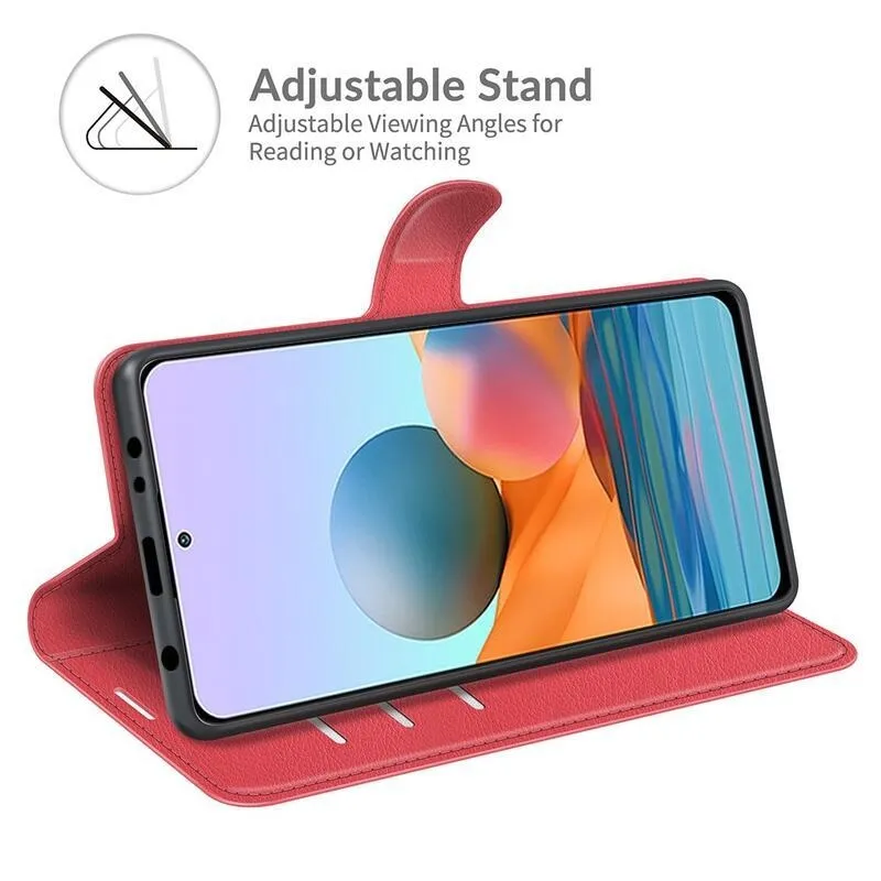 Litchi pénztárca tok a Xiaomi Redmi Note 10 Pro-hoz - piros