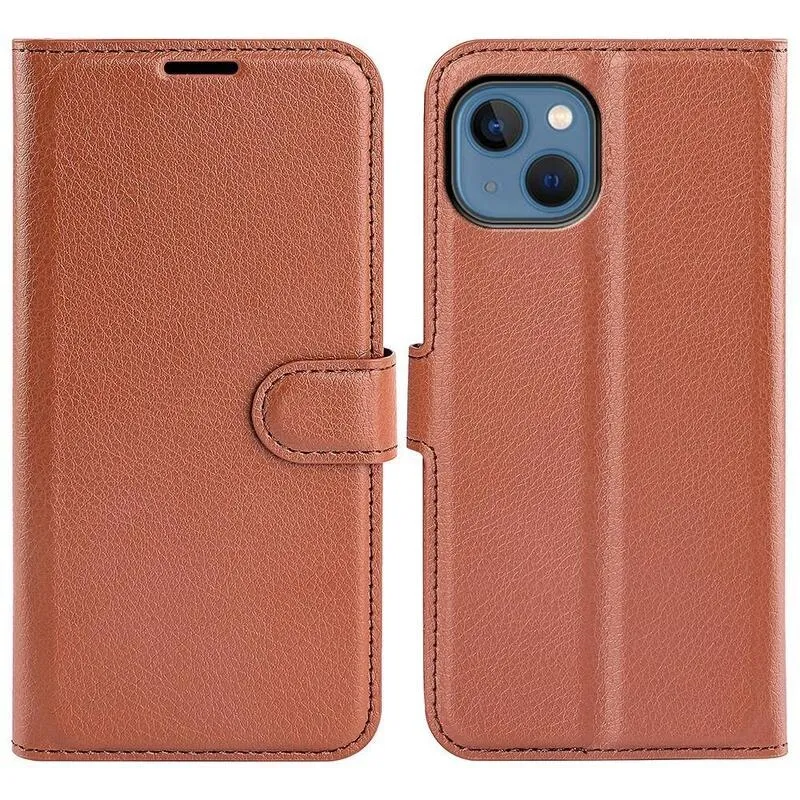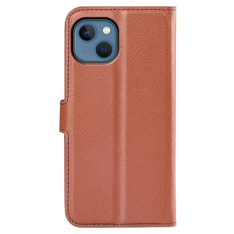 Litchi pénztárca tok iPhone 14 Plus készülékhez - barna