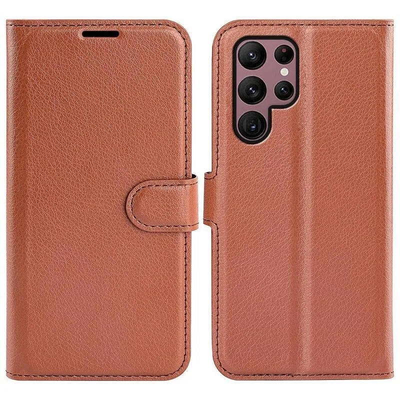 Litchi pénztárca tok Samsung Galaxy S23 Ultra készülékhez - barna