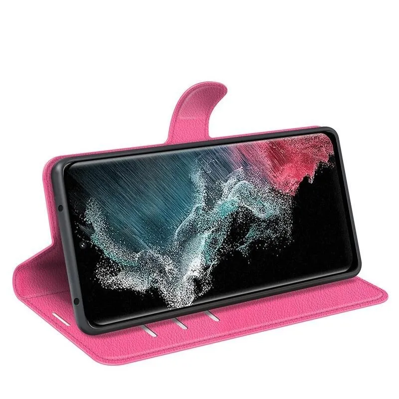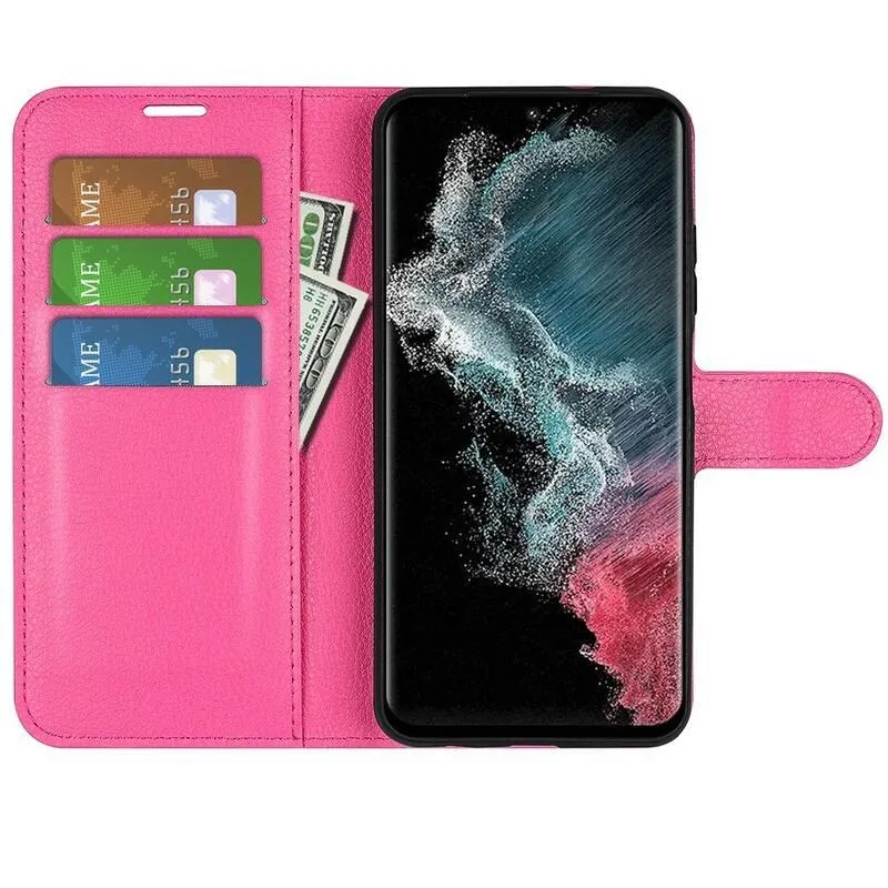 Litchi pénztárca tok Samsung Galaxy S23 Ultra készülékhez - rózsaszínű