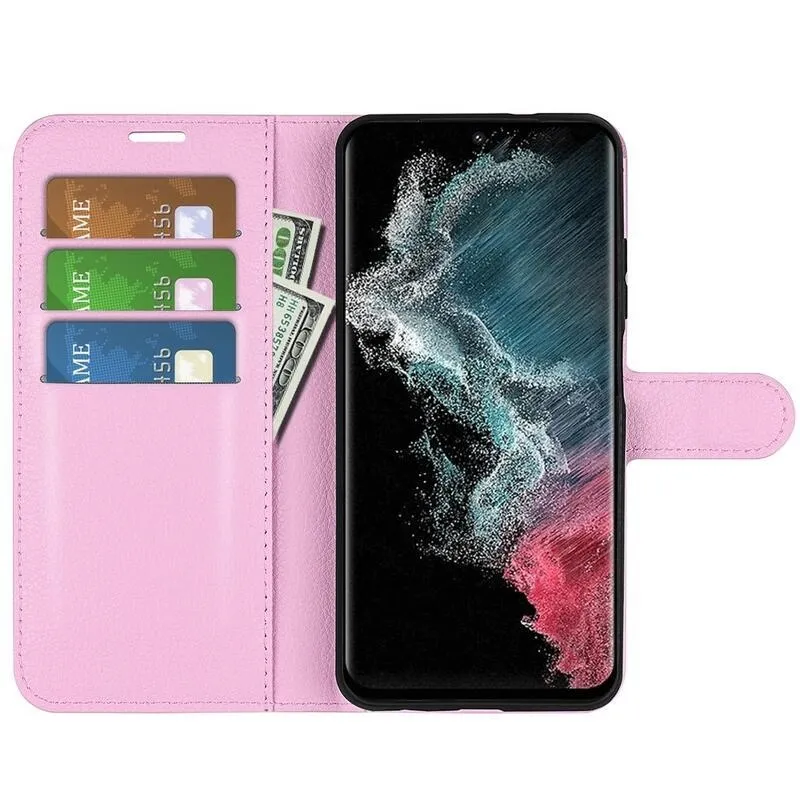 Litchi pénztárca tok Samsung Galaxy S23 Ultra készülékhez - rózsaszín