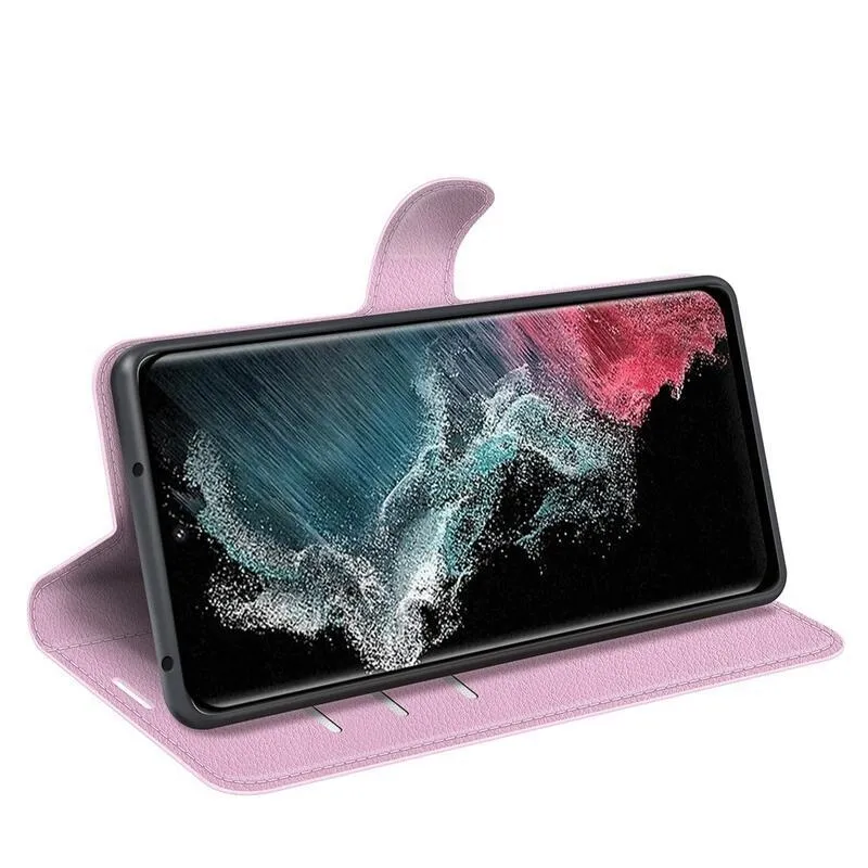 Litchi rózsaszín könyv tok Samsung Galaxy S23 Ultra készülékhez