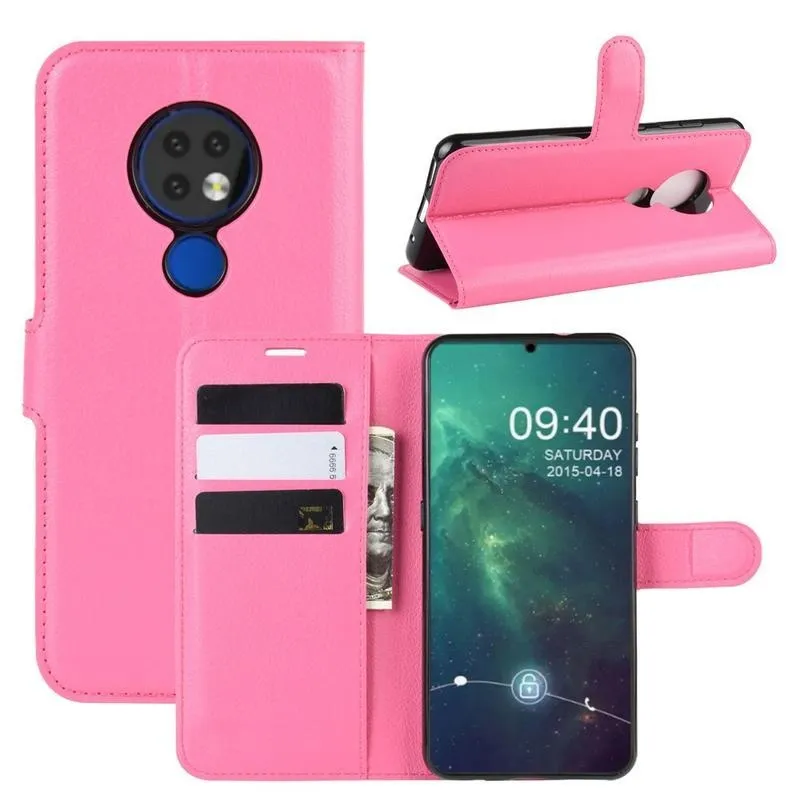 Litchi PU bőr mobiltáska Nokia 6.2 / Nokia 7.2 - rózsaszínű