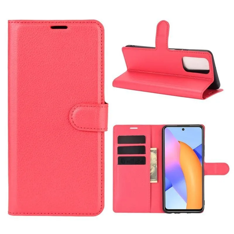 Litchi PU bőr pénztárca tok a Honor 10X Lite-hoz - piros