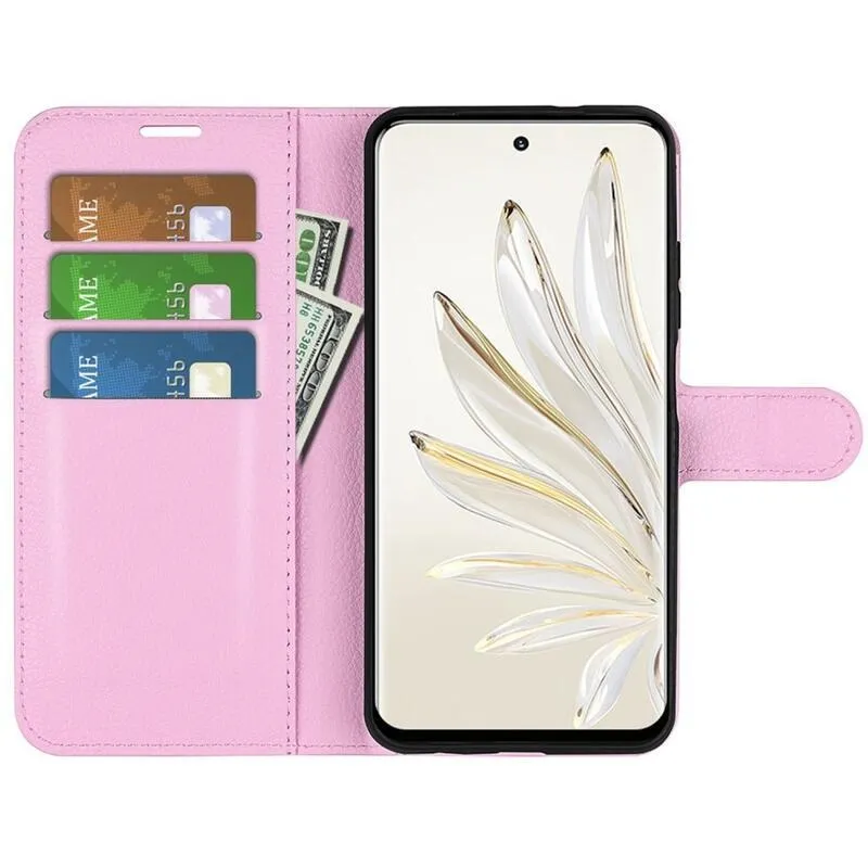 Litchi rózsaszín könyvtáska a Honor 70 5G számára