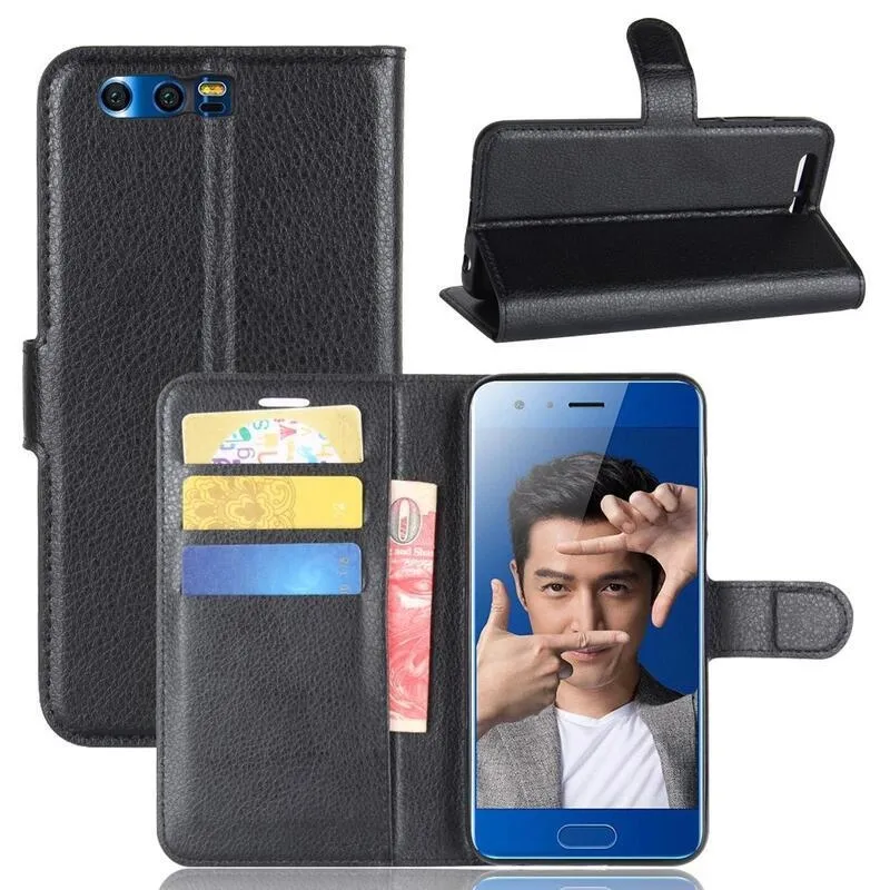 Litchi PU bőr pénztárca tok a Honor 9-hez - fekete