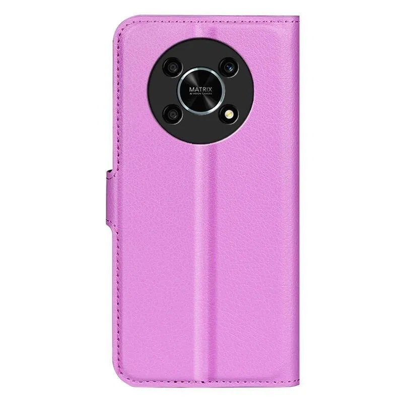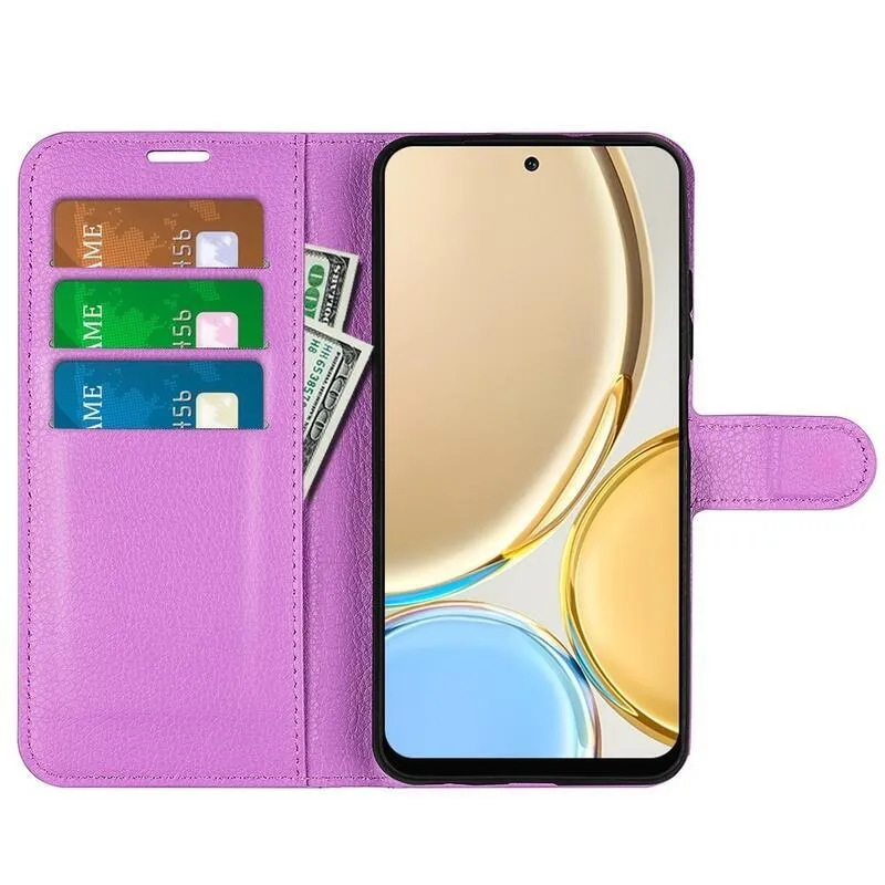 Litchi PU bőr pénztárca tok a Honor Magic 4 Lite 5G számára - lila