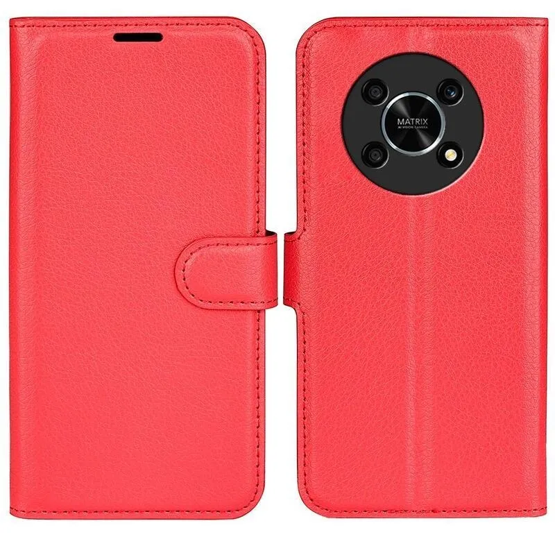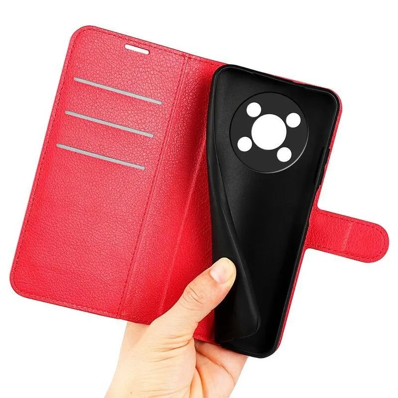Litchi PU bőr pénztárca tok a Honor Magic 4 Lite 5G számára - piros