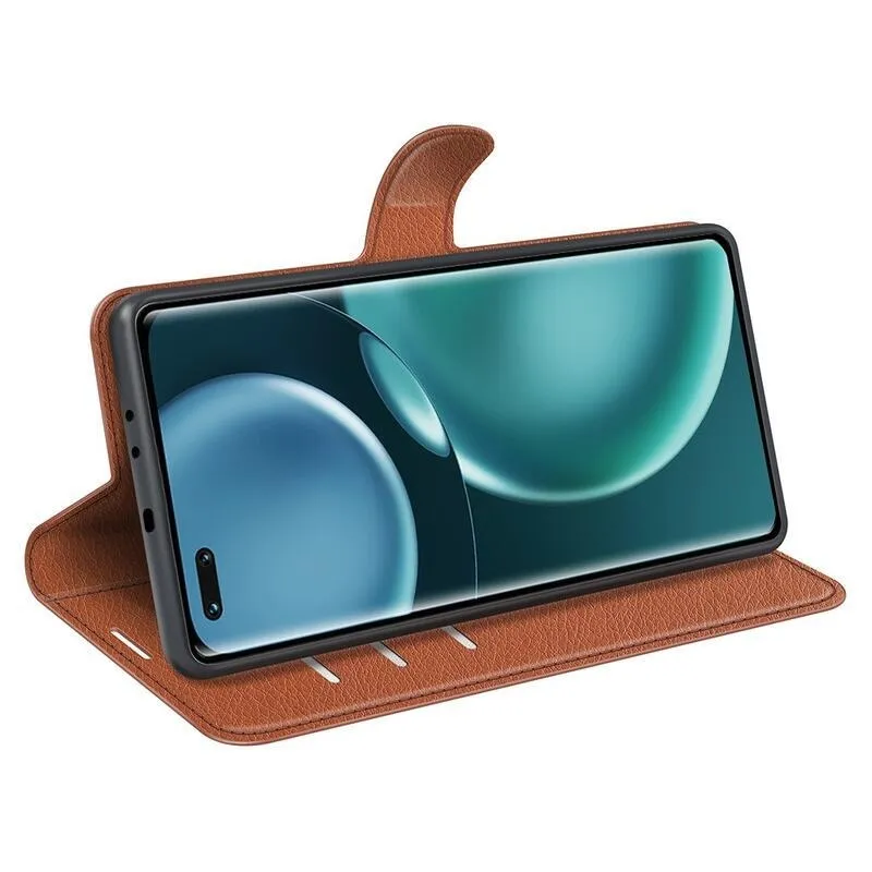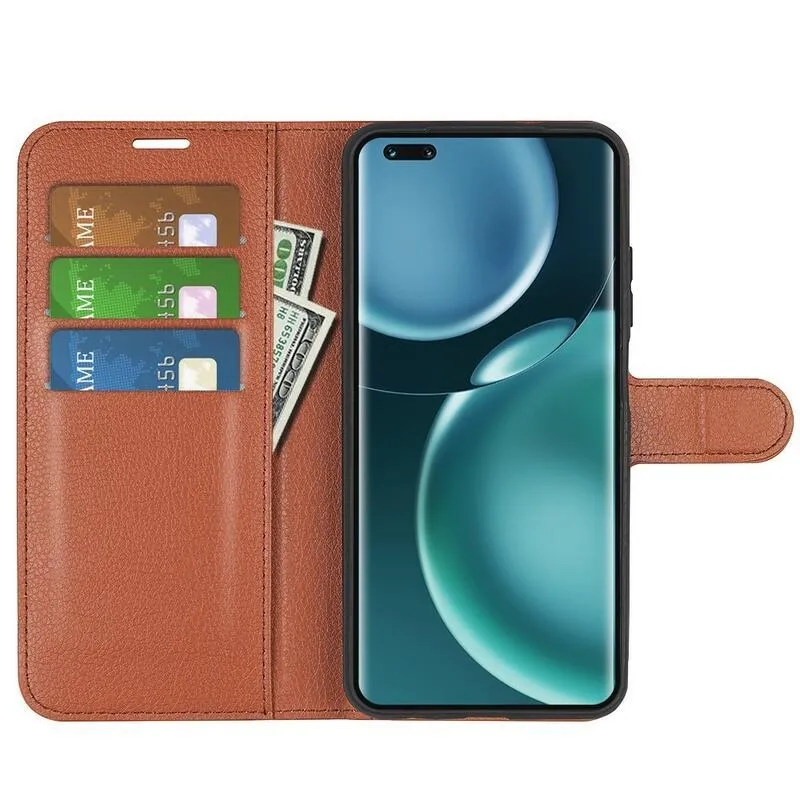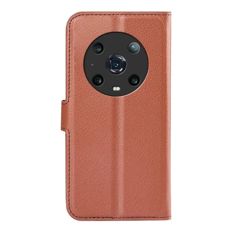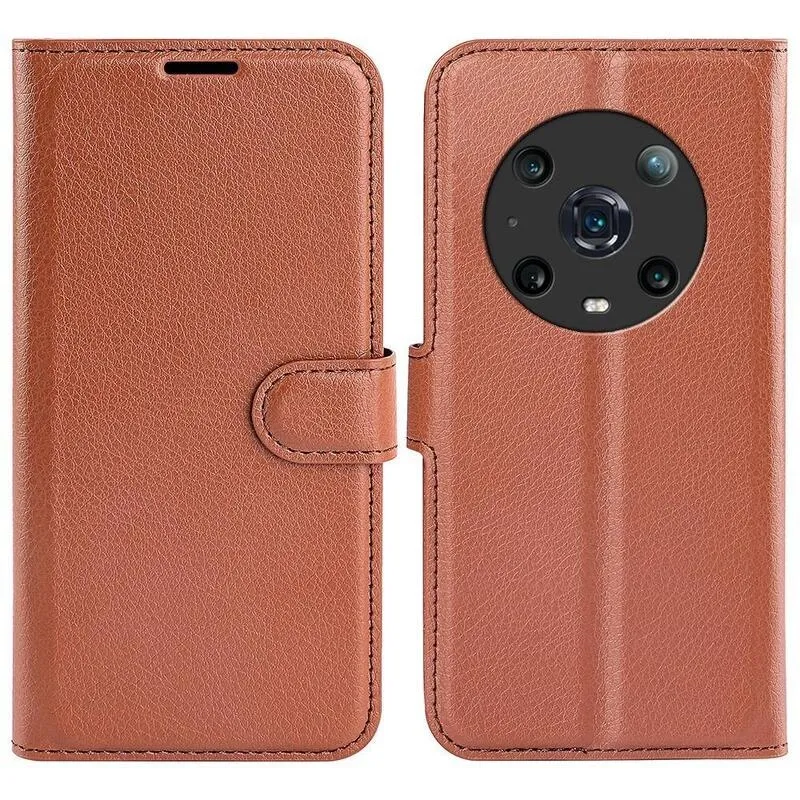 Litchi PU bőr pénztárca tok a Honor Magic 4 Pro 5G számára - barna