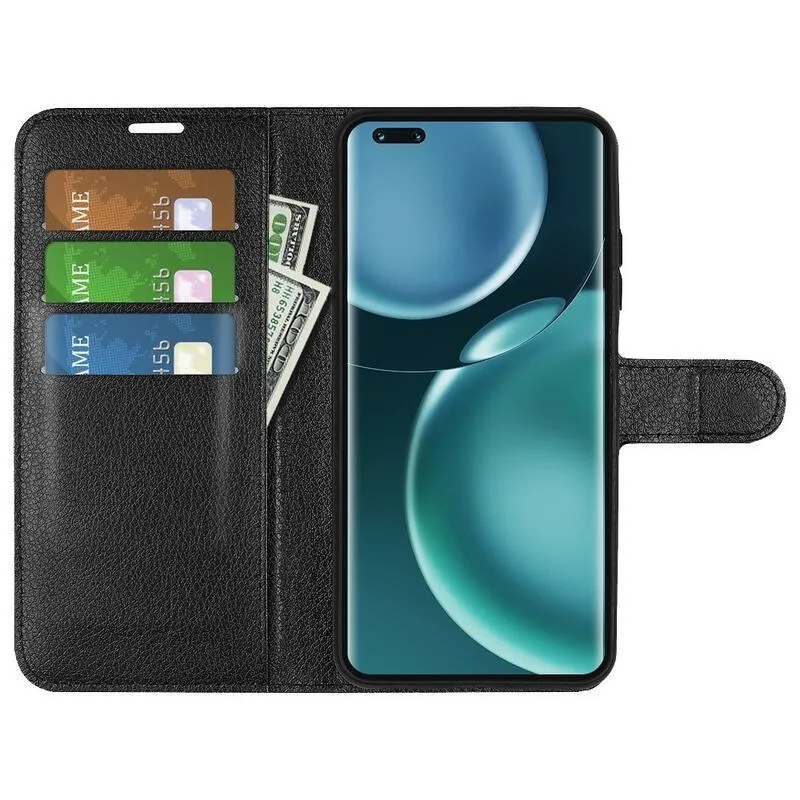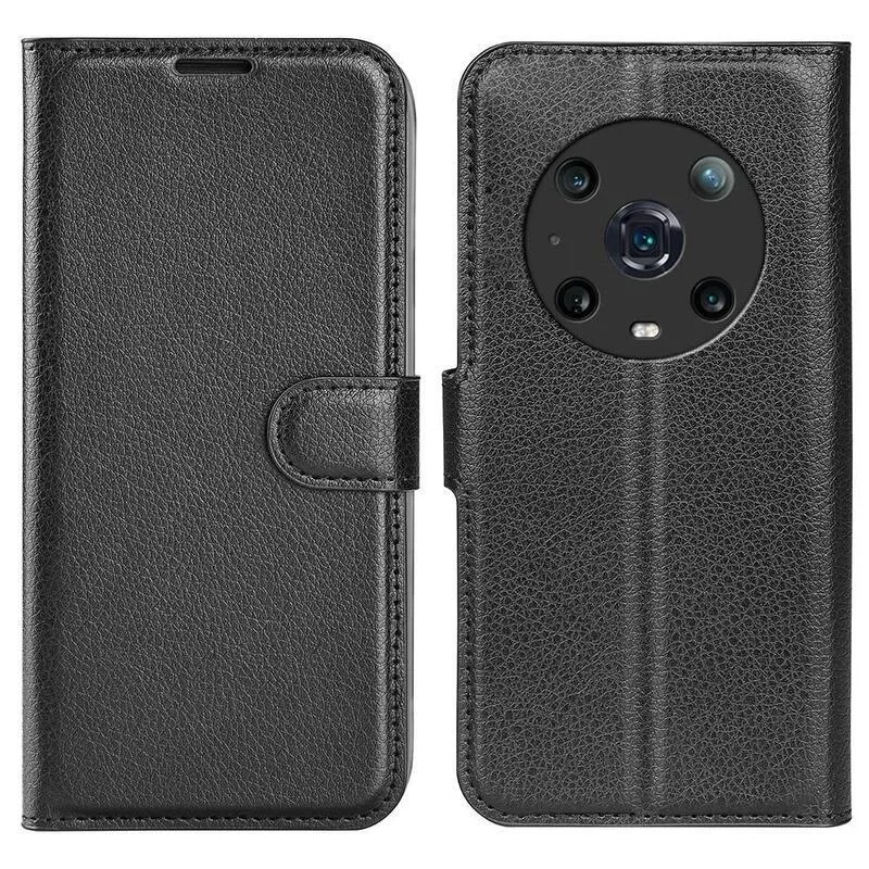 Litchi PU bőr pénztárca tok a Honor Magic 4 Pro 5G számára - fekete