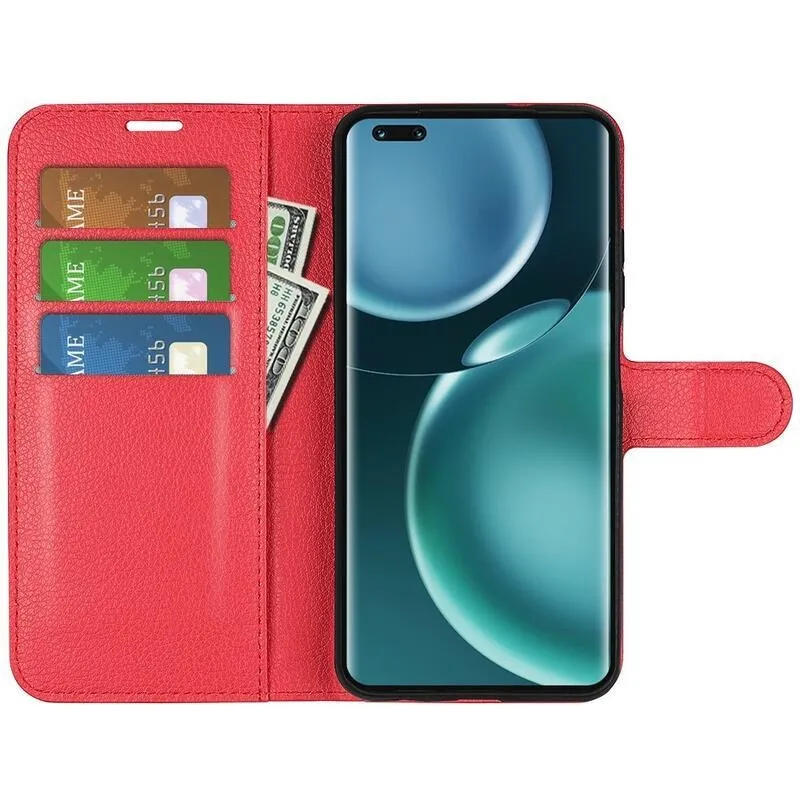 Litchi PU bőr pénztárca tok a Honor Magic 4 Pro 5G számára - piros
