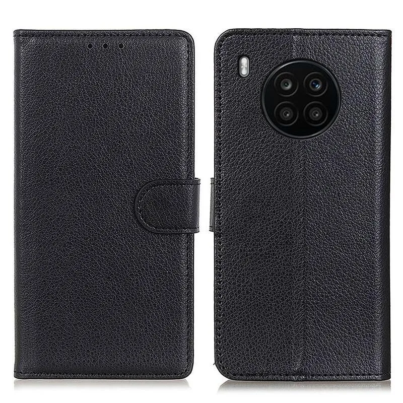 Litchi PU bőr pénztárca tok a Huawei Nova 8i/Honor 50 Lite-hoz - fekete