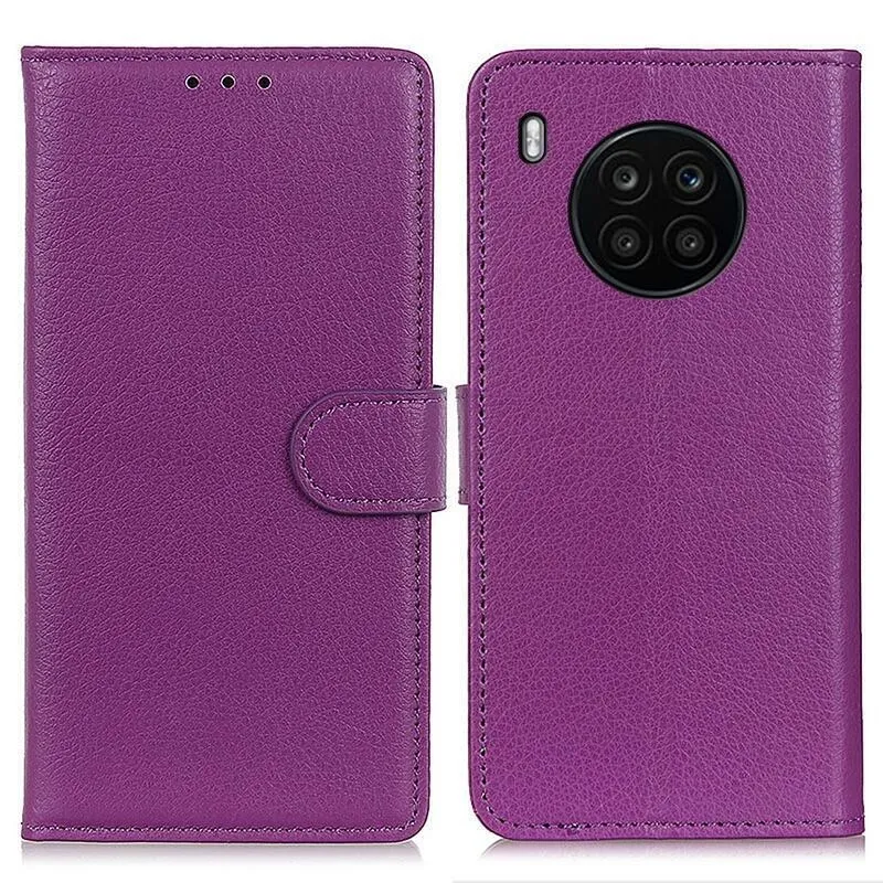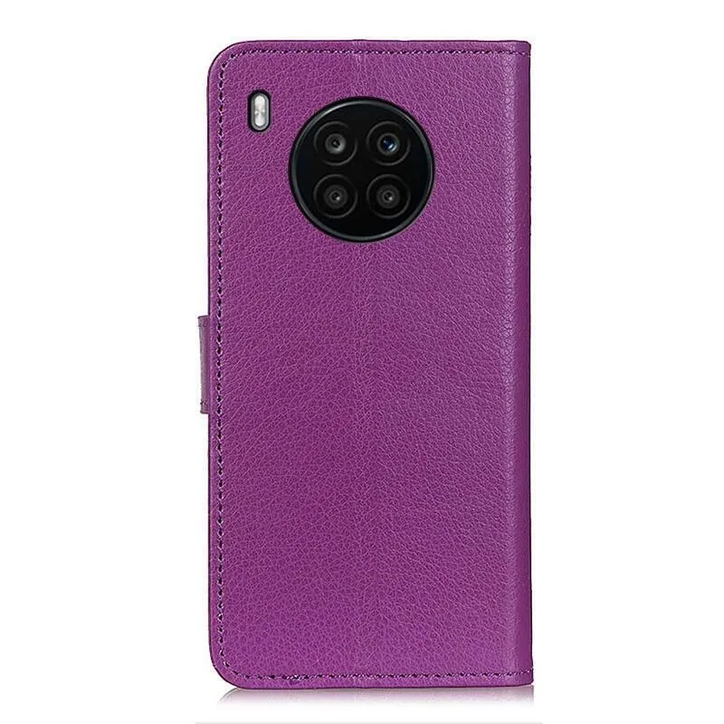 Litchi PU bőr pénztárca tok a Huawei Nova 8i/Honor 50 Lite-hoz - lila
