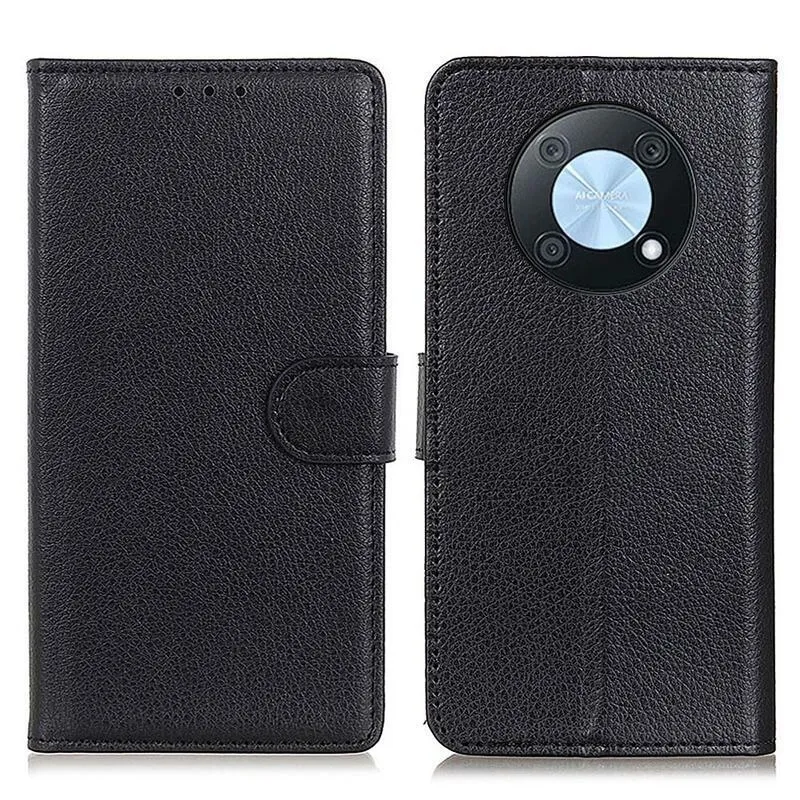 Litchi PU bőr pénztárca tok a Huawei Nova Y90-hez - fekete