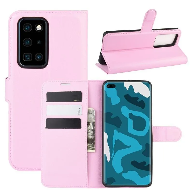 Litchi PU bőr pénztárca tok a Huawei P40 Pro-hoz - rózsaszínű