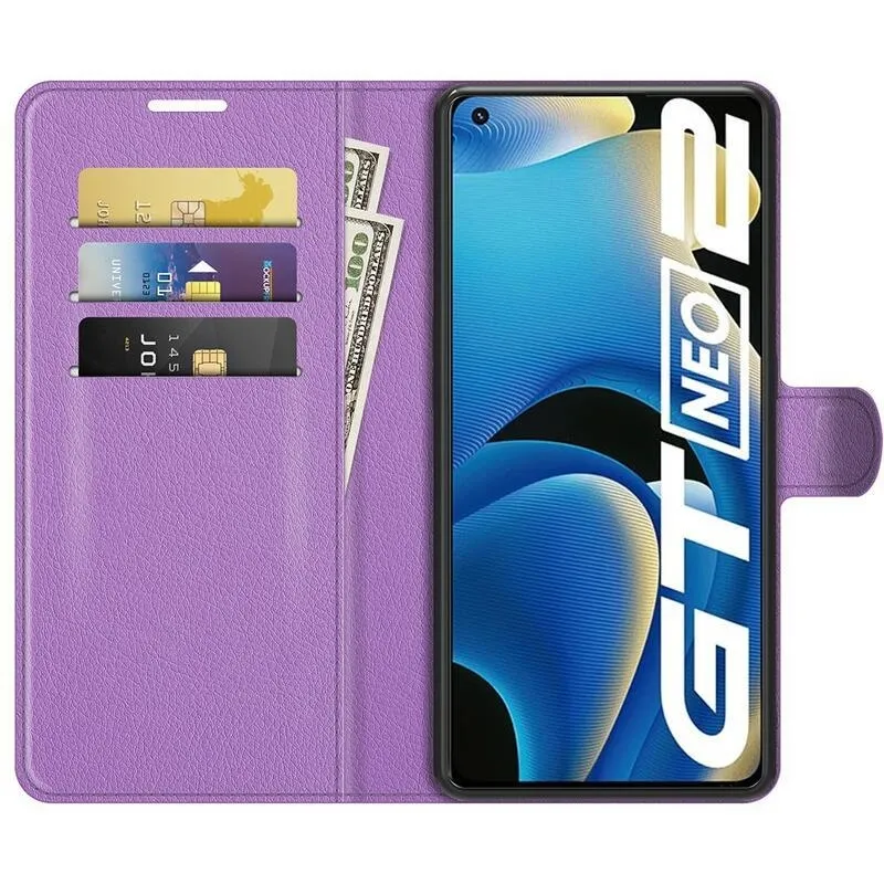 Litchi PU bőr pénztárca tok a Realme GT Neo 2 számára - lila