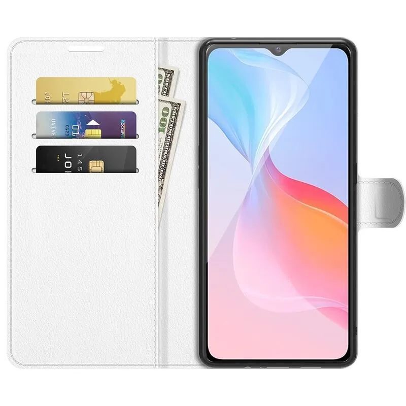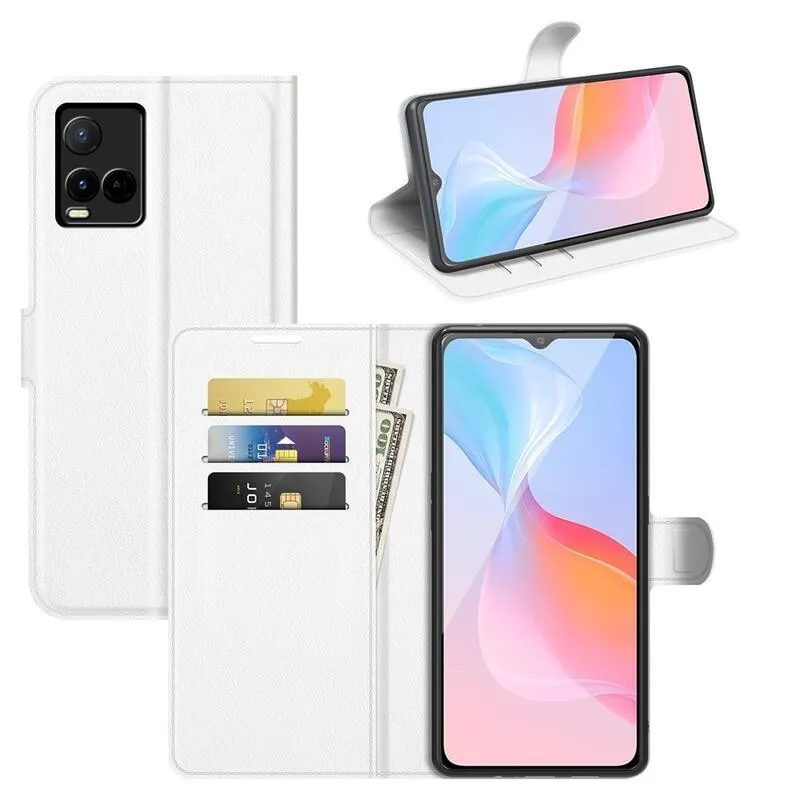 Litchi PU bőr pénztárca tok a Vivo Y21/Y21s/Y33s számára - fehér