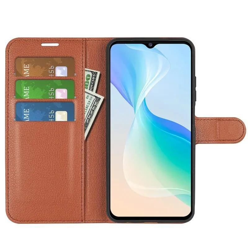 Litchi barna könyv tok a Vivo Y76 5G/Y76s számára