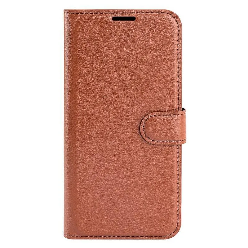 Litchi PU bőr pénztárca tok a Vivo Y76 5G/Y76s számára - barna