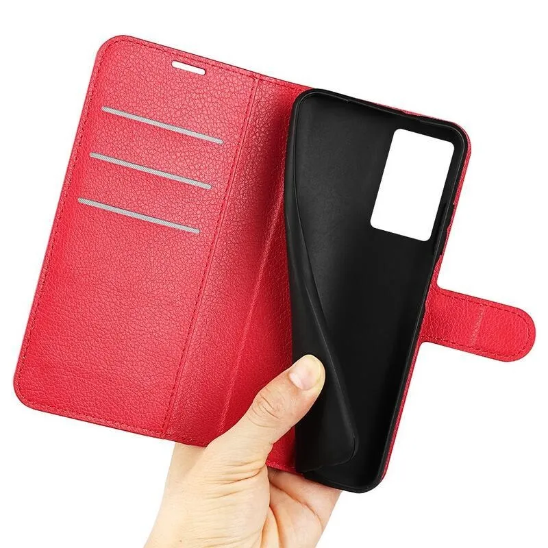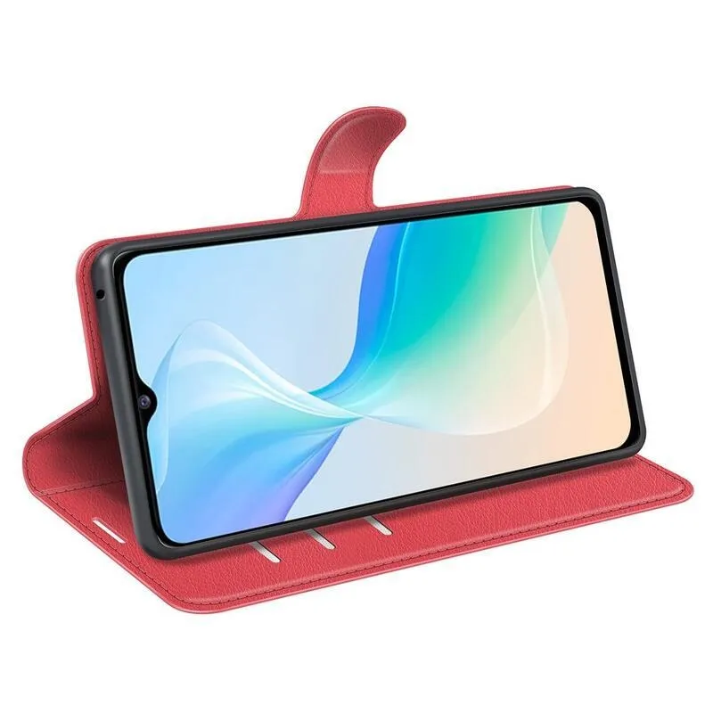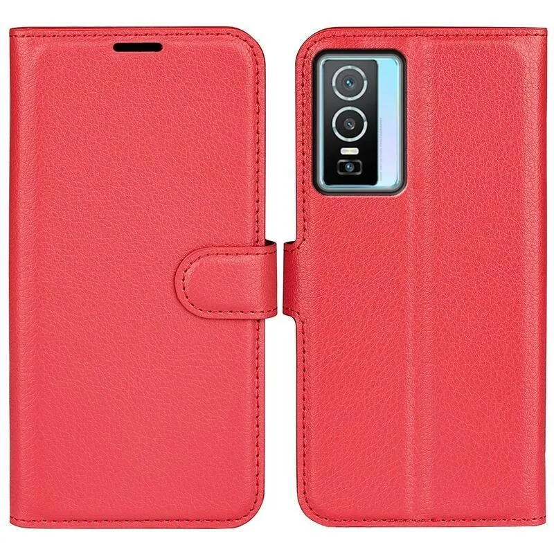 Litchi piros könyv tok Vivo Y76 5G/Y76s számára