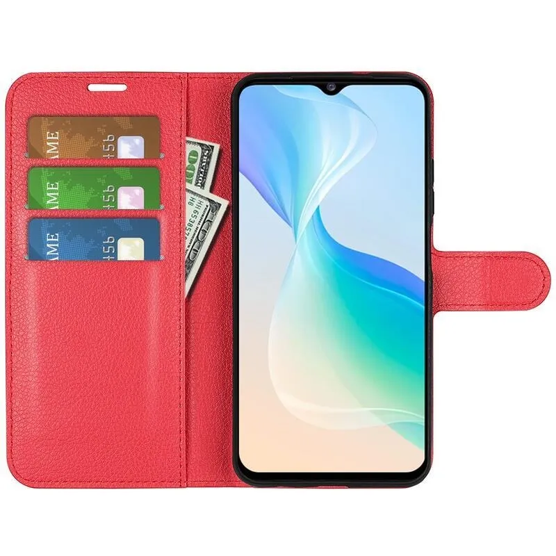 Litchi PU bőr pénztárca tok a Vivo Y76 5G/Y76s számára - piros
