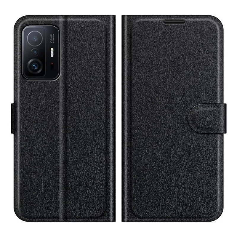 Litchi PU bőr pénztárca tok a Xiaomi 11T/11T Pro-hoz - fekete