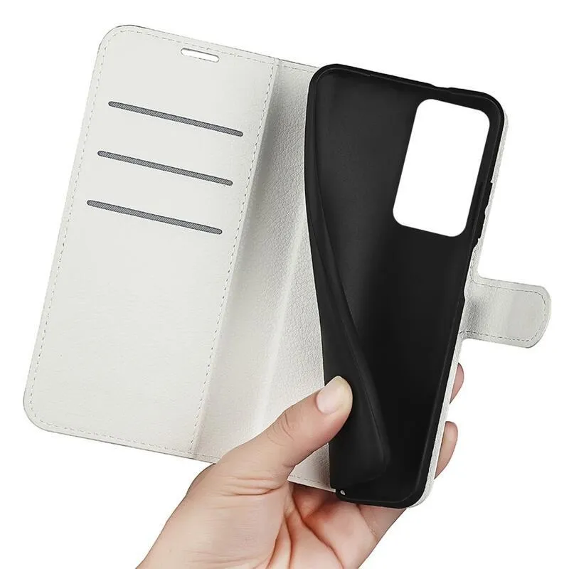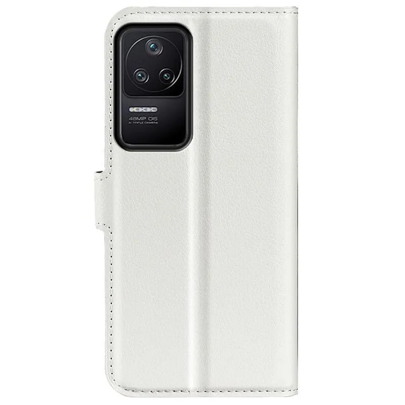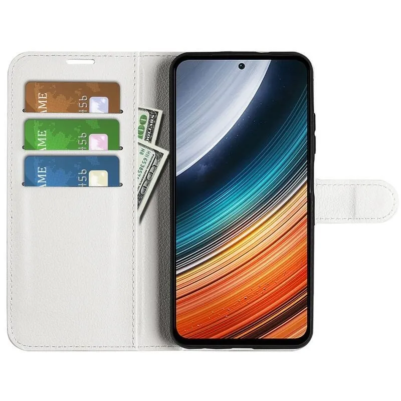 Litchi PU bőr pénztárca tok a Xiaomi Poco F4 5G-hez - fehér