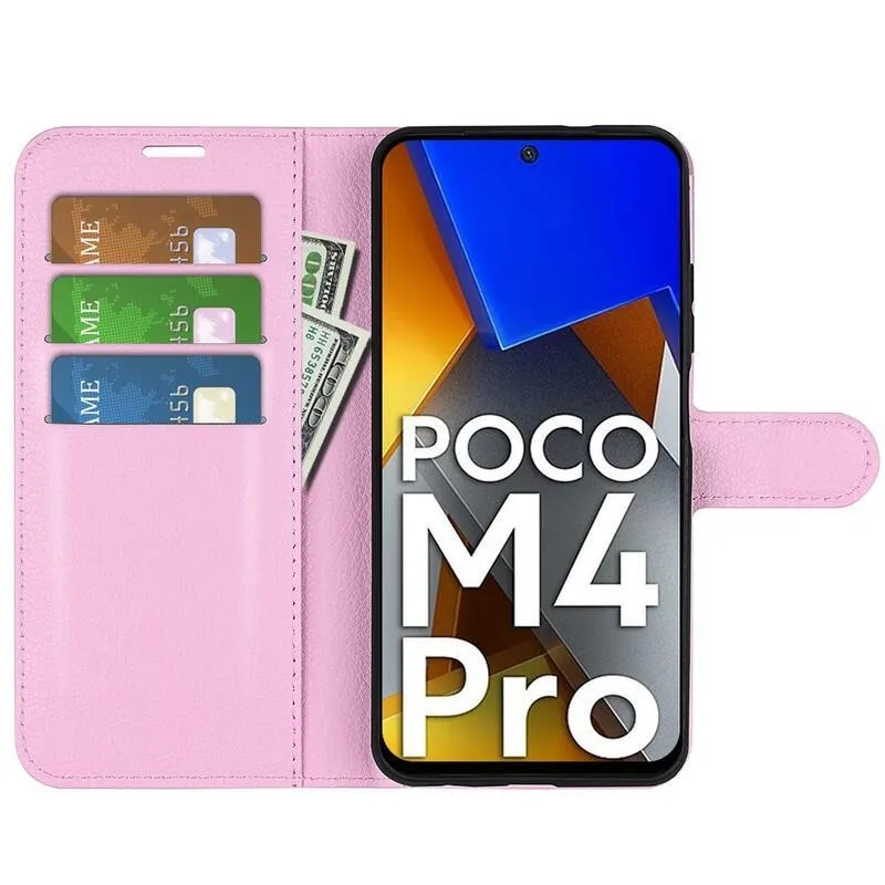 Litchi PU bőr pénztárca tok a Xiaomi Poco M4 Pro 4G-hez - rózsaszínű
