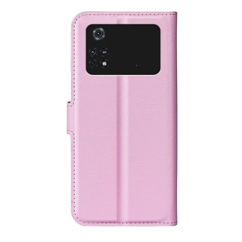 Litchi rózsaszín könyv tok a Xiaomi Poco M4 Pro 4G-hez