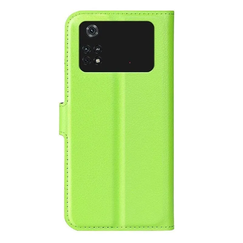 Litchi PU bőr pénztárca tok a Xiaomi Poco M4 Pro 4G-hez - zöld