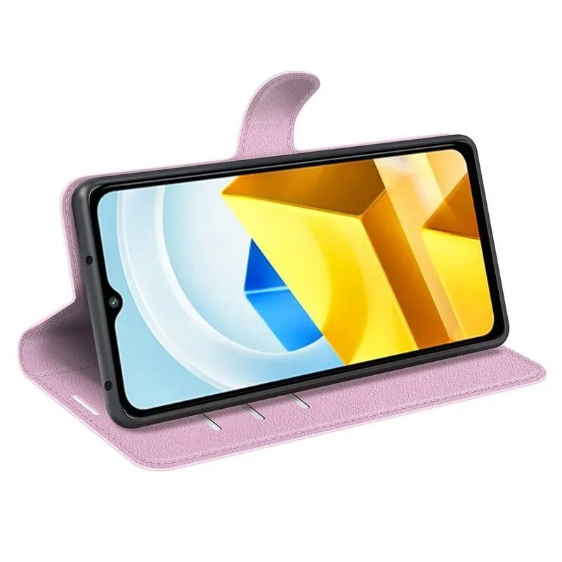 Litchi rózsaszín könyv tok a Xiaomi Poco M5 számára