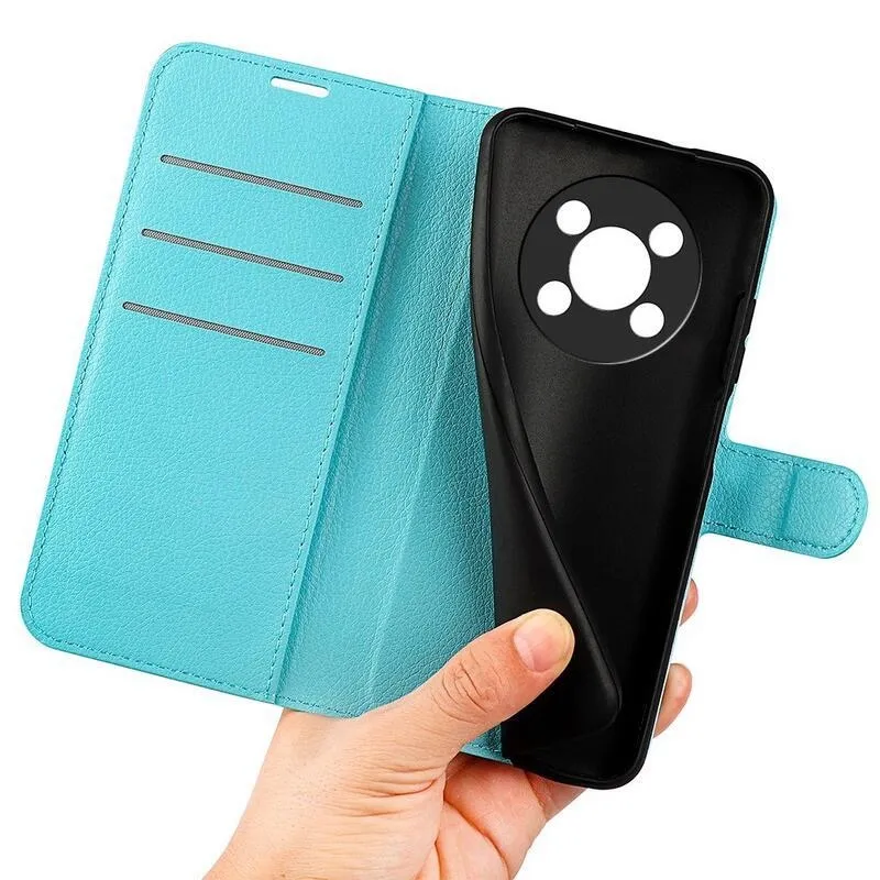Litchi PU bőr pénztárca tok Honor Magic 4 Lite 5G - kék