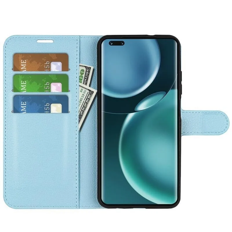 Litchi PU bőr pénztárca tok Honor Magic 4 Pro 5G - kék