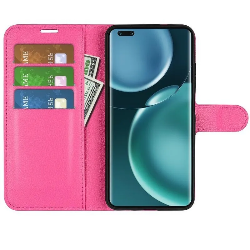 Litchi PU bőr pénztárca tok Honor Magic 4 Pro 5G - rózsaszínű