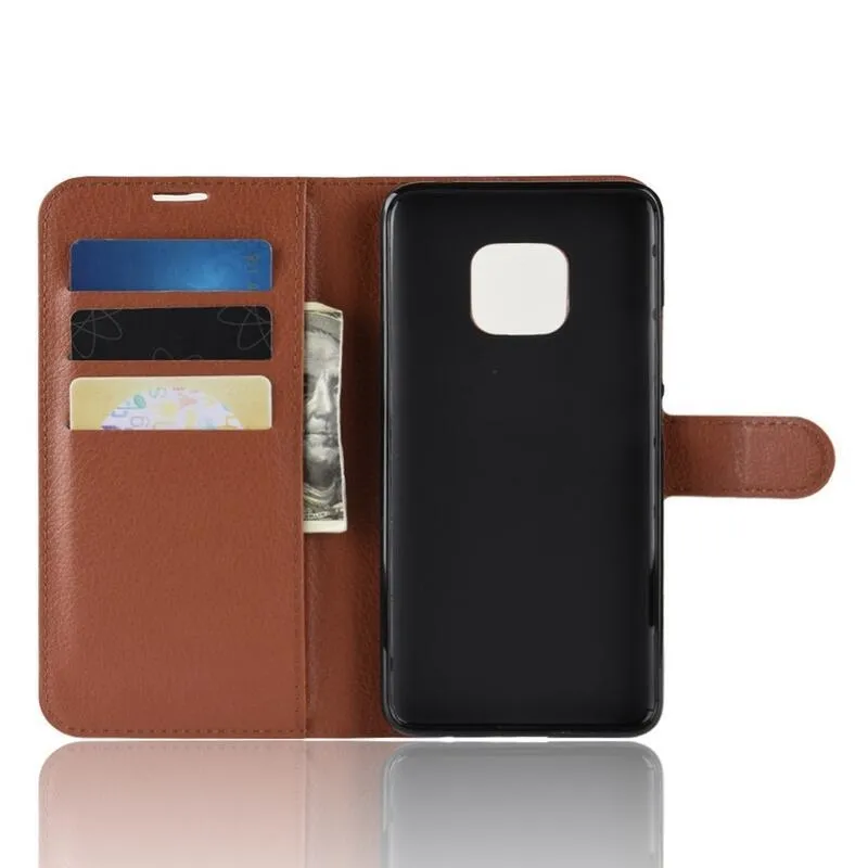 Litchi PU bőr pénztárca tok Huawei Mate 20 Pro-hoz - barna