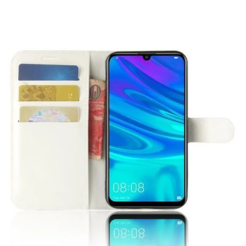 Litchi PU bőr pénztárca tok Huawei Y7 (2019) - fehér