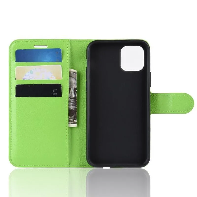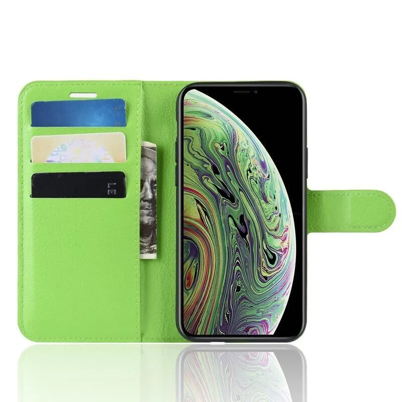 Litchi PU bőr pénztárca tok iPhone 11 Pro 5.8-hoz - zöld
