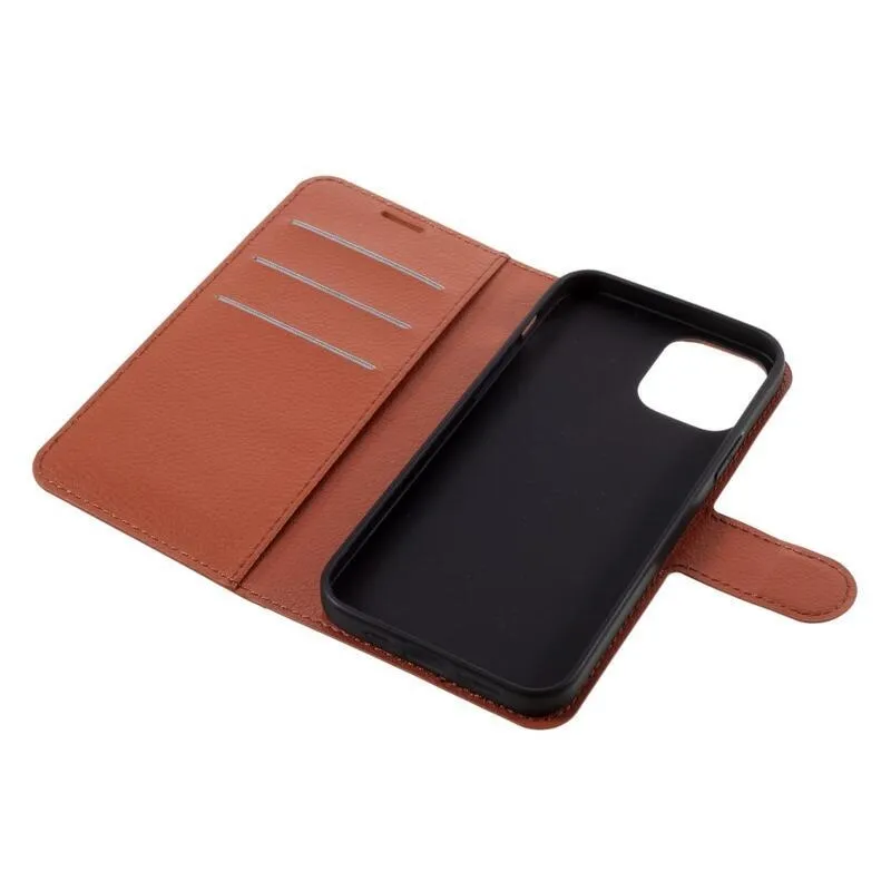 Litchi PU bőr pénztárca tok iPhone 12/12 Pro készülékhez - barna