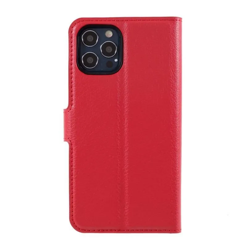 Litchi PU bőr pénztárca tok iPhone 12/12 Pro készülékhez - piros