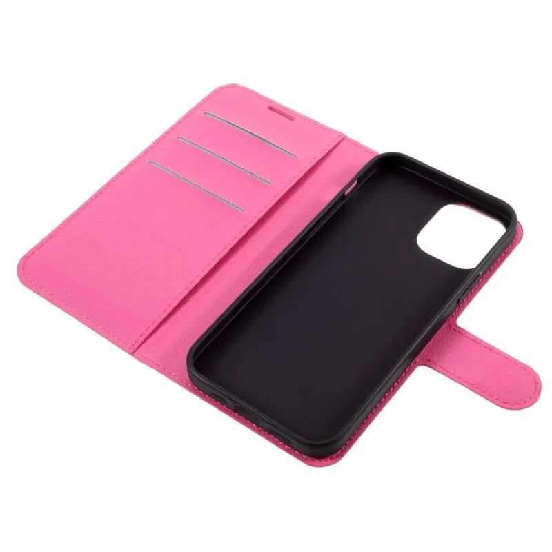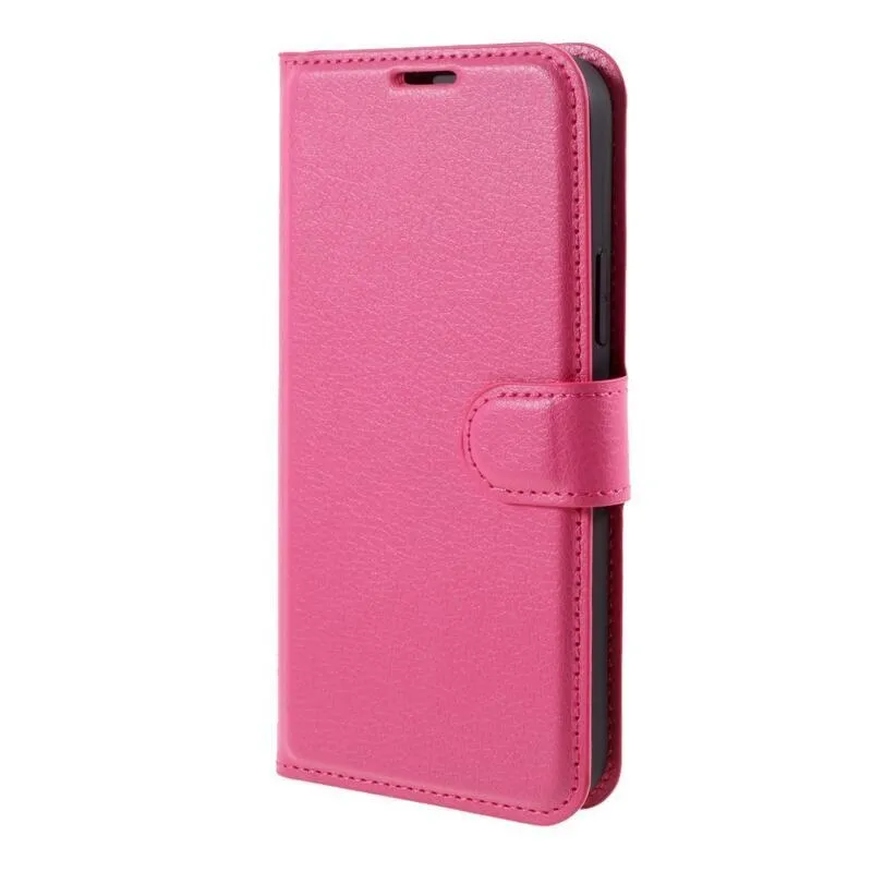 Litchi PU bőr pénztárca tok iPhone 12/12 Pro készülékhez - rózsaszínű